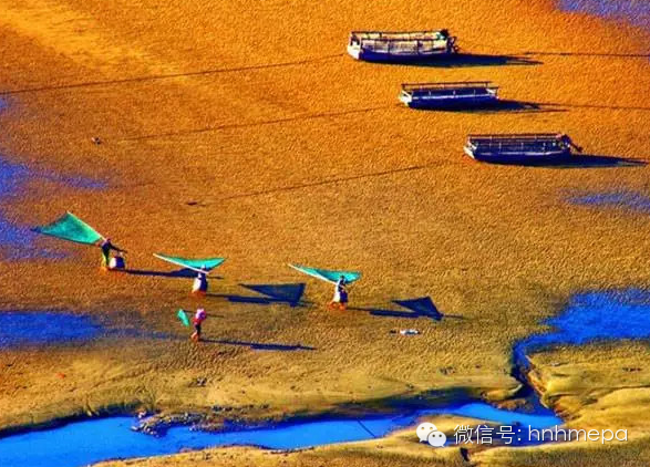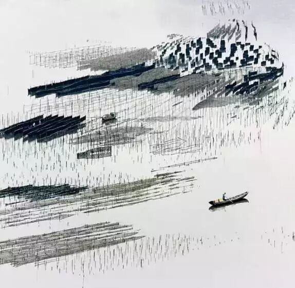 光影变化下,滩涂变得五彩斑斓,日出日落,潮涨潮落,竿影间穿梭着渔船,劳作的渔民,美得令人惊艳。