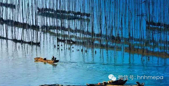 花竹村,近景浮标竹竿、中景鱼排木屋、远景岛屿帆影。在这里居高临下,视野开阔,可以远眺福瑶列岛全貌。山崖下就是大海,和一览无际的滩涂,宁静美丽。