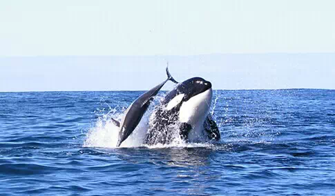 虎鲸的时速为30海里。众所周知,短跑运动的速度要比长跑快。但有些海豚能连日和全速航行的船只悠然地并驾齐驱,说明它的快速游泳是能持续很久的。多数海豚的游速能和一些新型舰船比美。海豚完全浸在水里,受的阻力比浮在水面上前进的船要大,这就更显示出海豚游泳能力的高超。