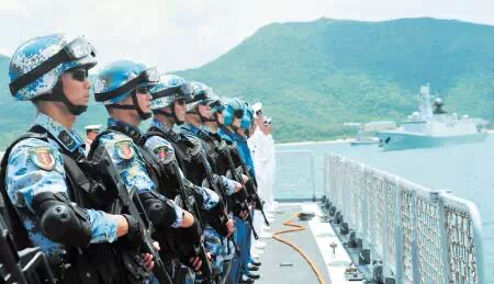 6月26日,“环太平洋-2014”军演在美国夏威夷海域拉开帷幕。中国海军首次派出舰艇参演,演习兵力由导弹驱逐舰海口舰、导弹护卫舰岳阳舰、综合补给舰千岛湖舰、和平方舟医院船及2架舰载直升机,特战分队和潜水分队各1个组成,参演舰艇规模仅次于东道主美国。中国海军此次亮相“环太平洋”军演,打破了首次参演只能观摩的惯例。