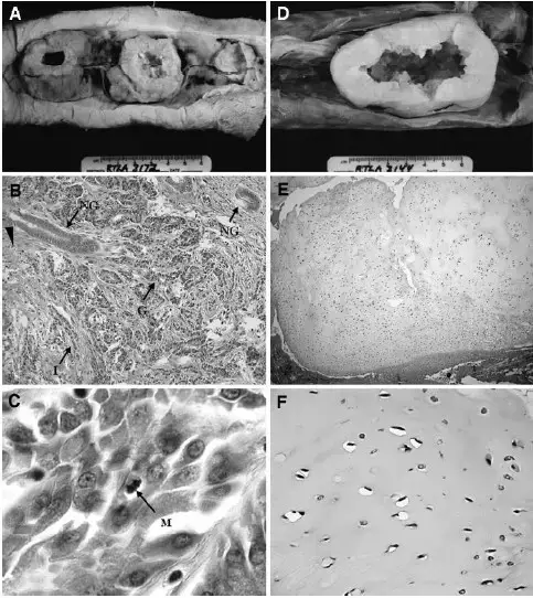 左:鲨鱼肾脏部位的恶性肿瘤;右:鲨鱼软骨内的肿瘤。