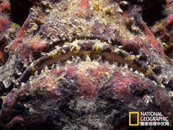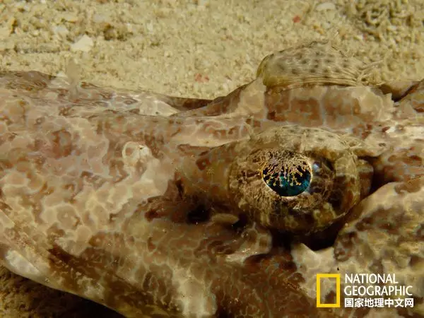 鳄鱼鱼的眼睛说明这位埋伏的猎人已经进化到了与海底和礁石融为一体的程度,鳄鱼鱼通常在海底和礁石中等候猎物。褶边虹膜看起来像海底的沙子,遮住了眼睛的黑色瞳孔,使得这位伪装大师如虎添翼。