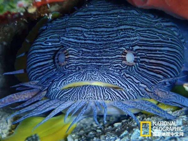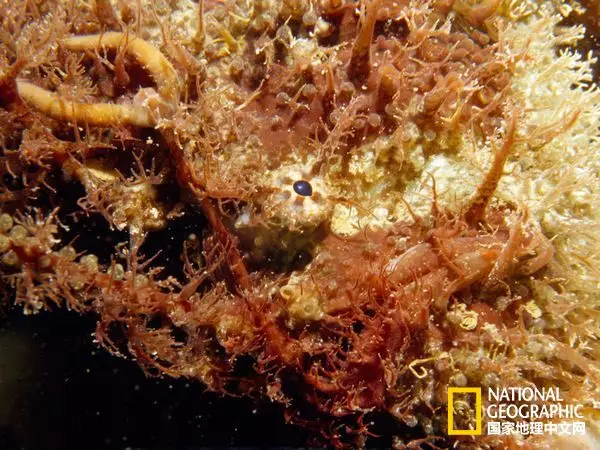 流苏琵琶鱼是200多种琵琶鱼中的一种,这些鱼通过伪装以及生理上的钓鱼构造捕食猎物,这也是它们名称的由来。这种鱼在突出的棒状背鳍棘上放置菌类作为诱饵,诱惑猎物靠近,然后,张开血盆大嘴将猎物一口吞下。