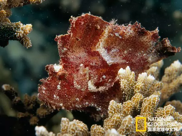 叶岩鱼不只是看起来像一片叶子,它有时如同一片枯叶,在水草或藻类中左右摇晃。被蒙蔽的小型甲壳类或鱼类将大难临头,岩鱼是一个强大的捕食者。