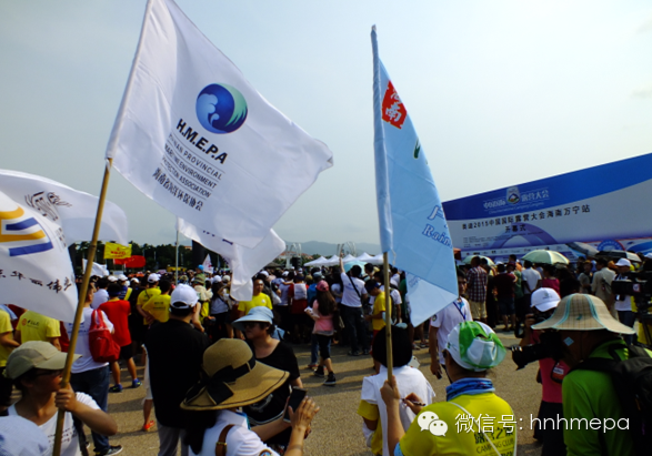 海南省海洋环保协会的旗帜在会场迎风飘扬