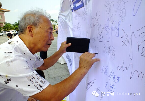 开幕式上,海南省海洋环保协会2014年度“海洋环保大使”曹勍宣读了海洋环保倡议书,呼吁大家自觉爱护海洋环境,从自己做起,积极参与宣传海洋环保事业,让更多爱心人士加入到海洋环保志愿者队伍中来。