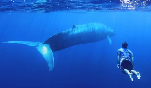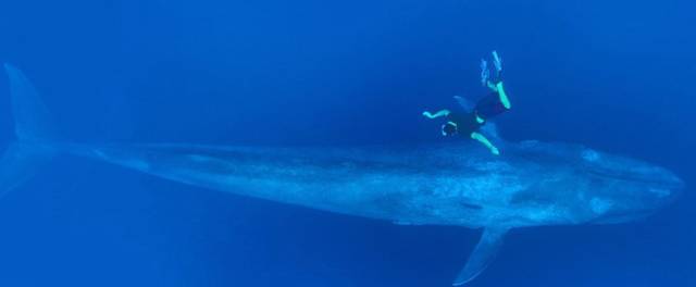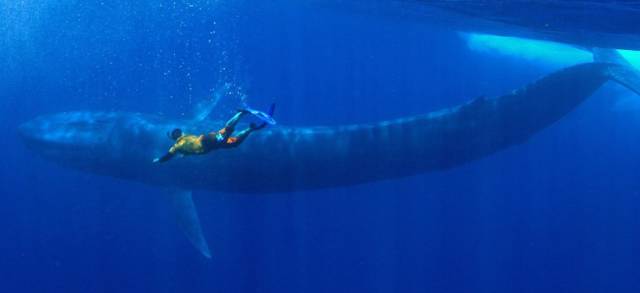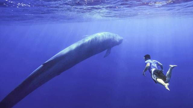 帕特里克所乘的皮滑艇与地球现存最大生物蓝鲸相距只有几米远,蓝鲸掀起的水花几乎可以打翻皮艇,但帕特里克却很享受与蓝鲸的亲密接触,纵情于与它有惊无险的互动。