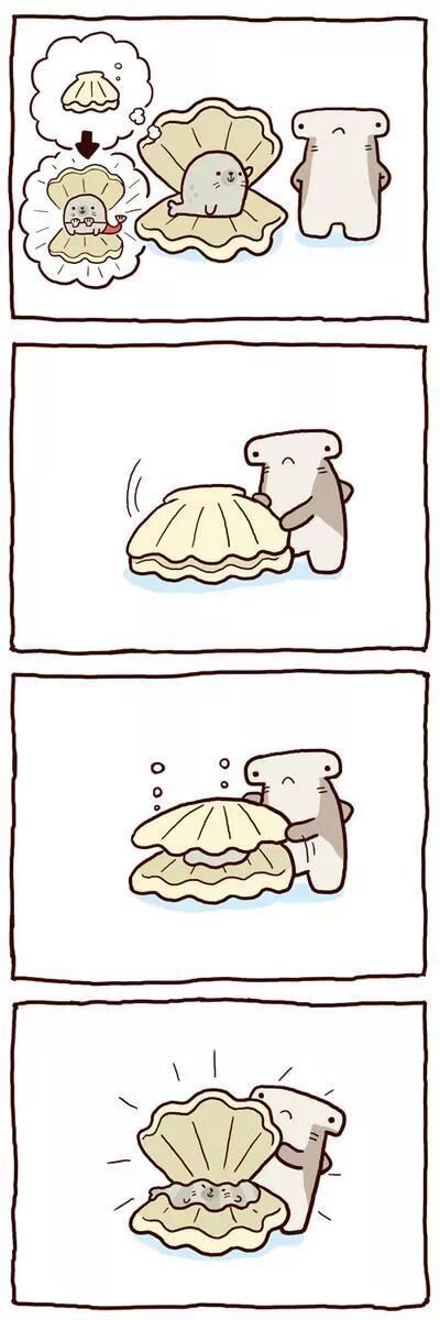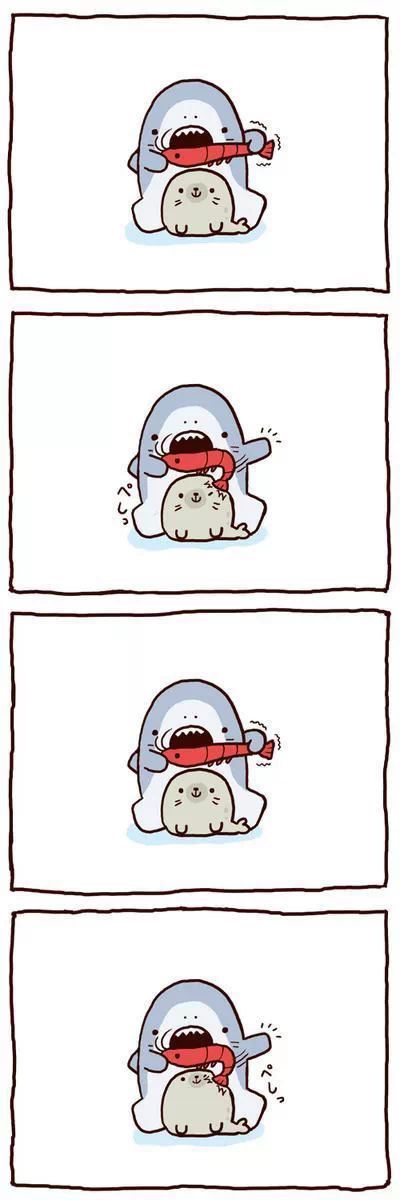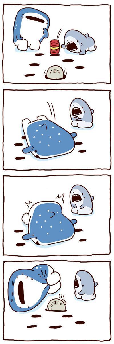 四格漫画丨蠢萌鲨鱼和呆萌海豹的日常!