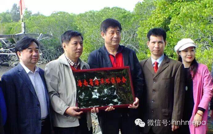 洋浦经济开发区海洋生态环境保护志愿者宋庆祝先生、杨文杰先生、王鹏先生等志愿者接受牌匾,并和大家一起对洋浦红树林区等沿海环境情况进行考察调研。